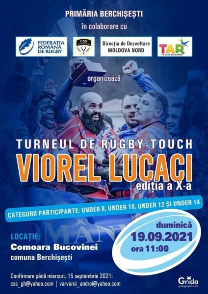 Primăria comunei Berchişeşti, în colaborare cu Federația Română de Rugby, Clubul Sportiv Şcolar Gura Humorului, Direcția de Dezvoltare Moldova Nord și „Te Aud România” organizează duminică, 19 septembrie a.c., ediția a IX-a a Turneului de rugby „Viorel Lucaci”, eveniment tradiţional pentru localitatea noastră şi pentru sportul sucevean.